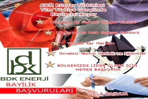 BDK enerji olarak rüzgar türbinleri üretiminde bir devrim yapıp, Arşimet tipi, Nautilus biçimli rüzgar türbinlerini üreterek. Daha verimli, uzun ömürlü ve şık ürünleri piyasaya sunduk. Ticaret yapanlar için ciddi bir alan teşkil eden ürünlerimizin satışını yapmak üzere bayilik vermekte. Tüm yatırımcıları bu sektörde faaliyet yapmaya davet etmekteyiz.