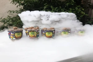 Ejderha Noktası olarak yediden yetmişe herkesin severek tükettiği dondurmanın çok farklı bir şeklini tüketicilerimize sunuyoruz. Azot ile soğutularak yapılan renkli cipsleri bardaklarda servis ediyor ve müşterilerimize ürünlerimizi tüketirken de bir görsel şölen vadediyoruz. 2016 yılından bu yana ülkemiz pazarına giren bu dondurma ve atıştırmalık çeşidinin gördüğü ilgi her geçen gün artmaya ve gıda sektöründe bayilik almak isteyen girişimcilerimiz için de karlı bir iş fırsatı olmaya devam ediyor. Ürünlerimizde kullandığımız azot aynı zamanda atmosferin % 78’ini de oluşturan bir gaz olup gıda sektöründe farklı alanlarda yoğun bir şekilde kullanılıyor. Sıvı haldeyken oldukça soğuk olan azot bu özelliği nedeni ile güvenilir bir soğutucu ve dondurucu olarak kullanıldığı gibi kimyasal reaksiyona girmemesi nedeniyle de tercih ediliyor. İnsan sağlığı açısından hiçbir zararı olmayan azotla ilgili olarak dikkat edilmesi gereken konunun, sıvı azotun servis yapılmadan önce yemekten ya da içecekten tamamen buharlaştırılması gerektiği olduğu biliniyor. Hazırlama ve servis aşamasında bu basit kurallara uyulduğu takdirde azot yiyeceklerin ve içeceklerin hazırlanmasında güvenli bir şekilde kullanılabiliyor.